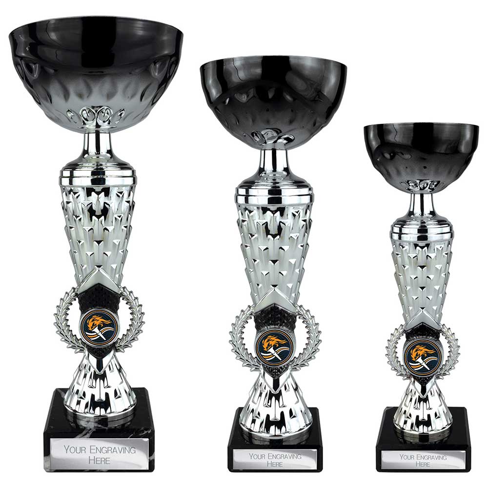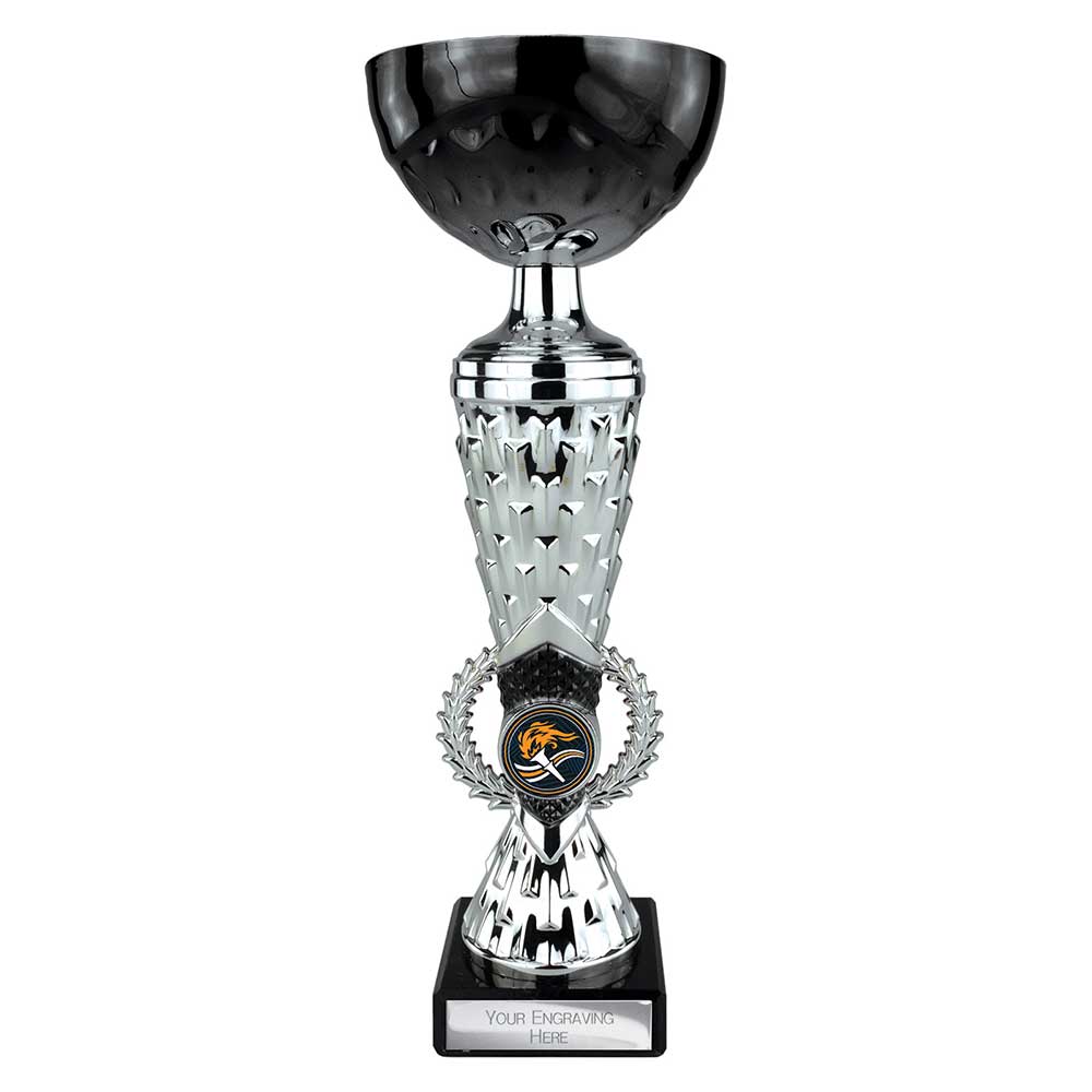 Energy – is a great value metal cup on plastic riser all on a marble base. Finished in silver with black highlights.