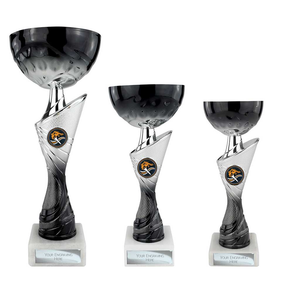 Sprite – is a great value metal cup on plastic riser all on a marble base. Finished in silver with black highlights.